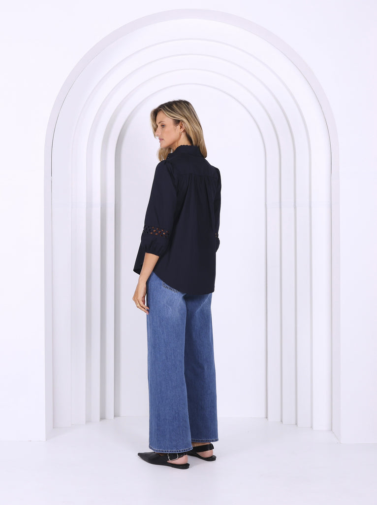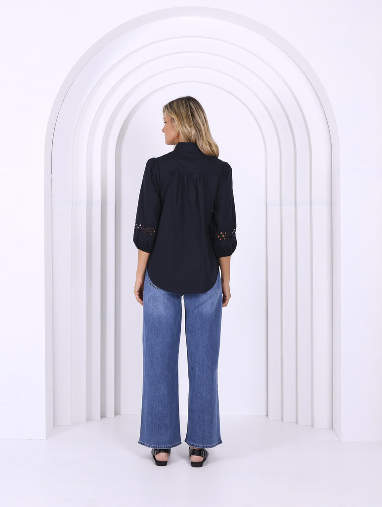 - 3/4 sleeve with cotton broidery