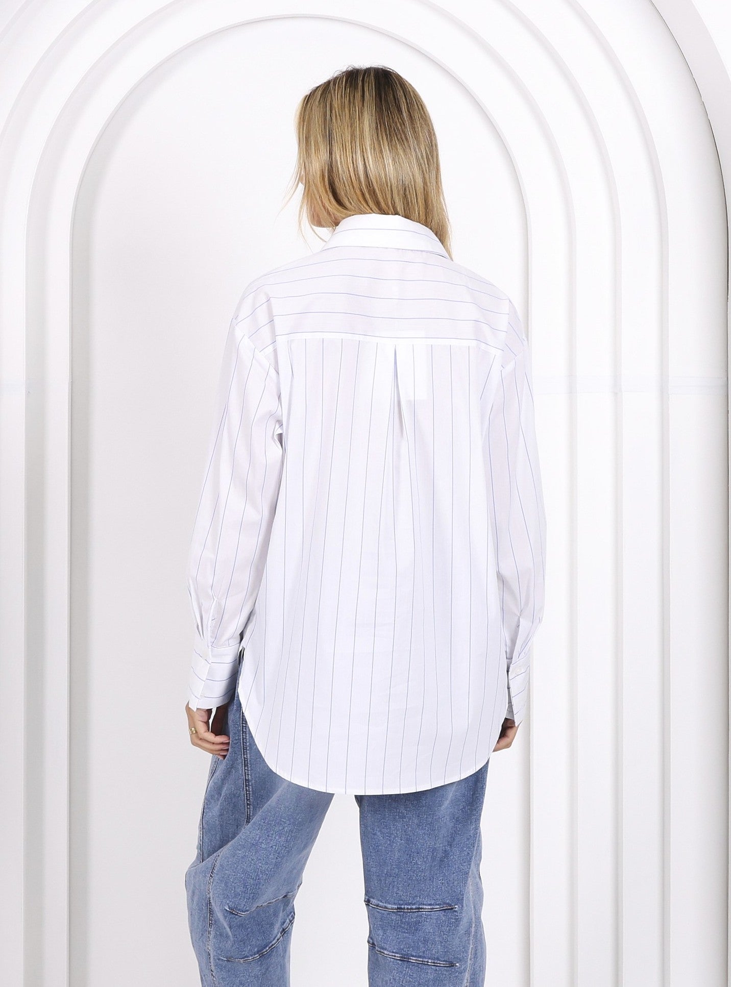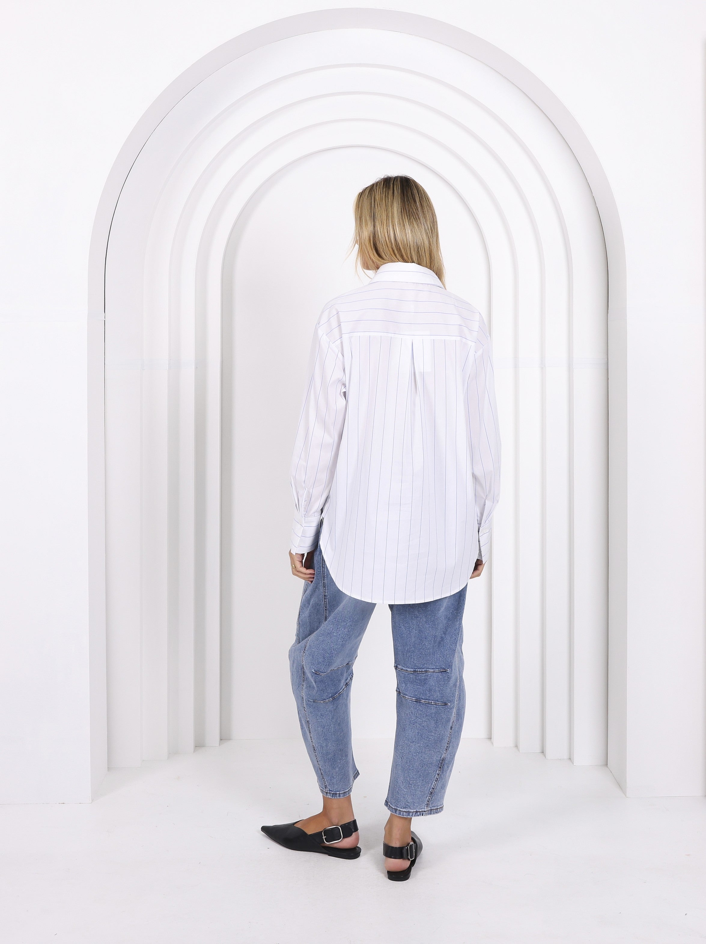 Oversized Shirt - White Blue Stripe - 8 is backordered and will ship as soon as it is back in stock.