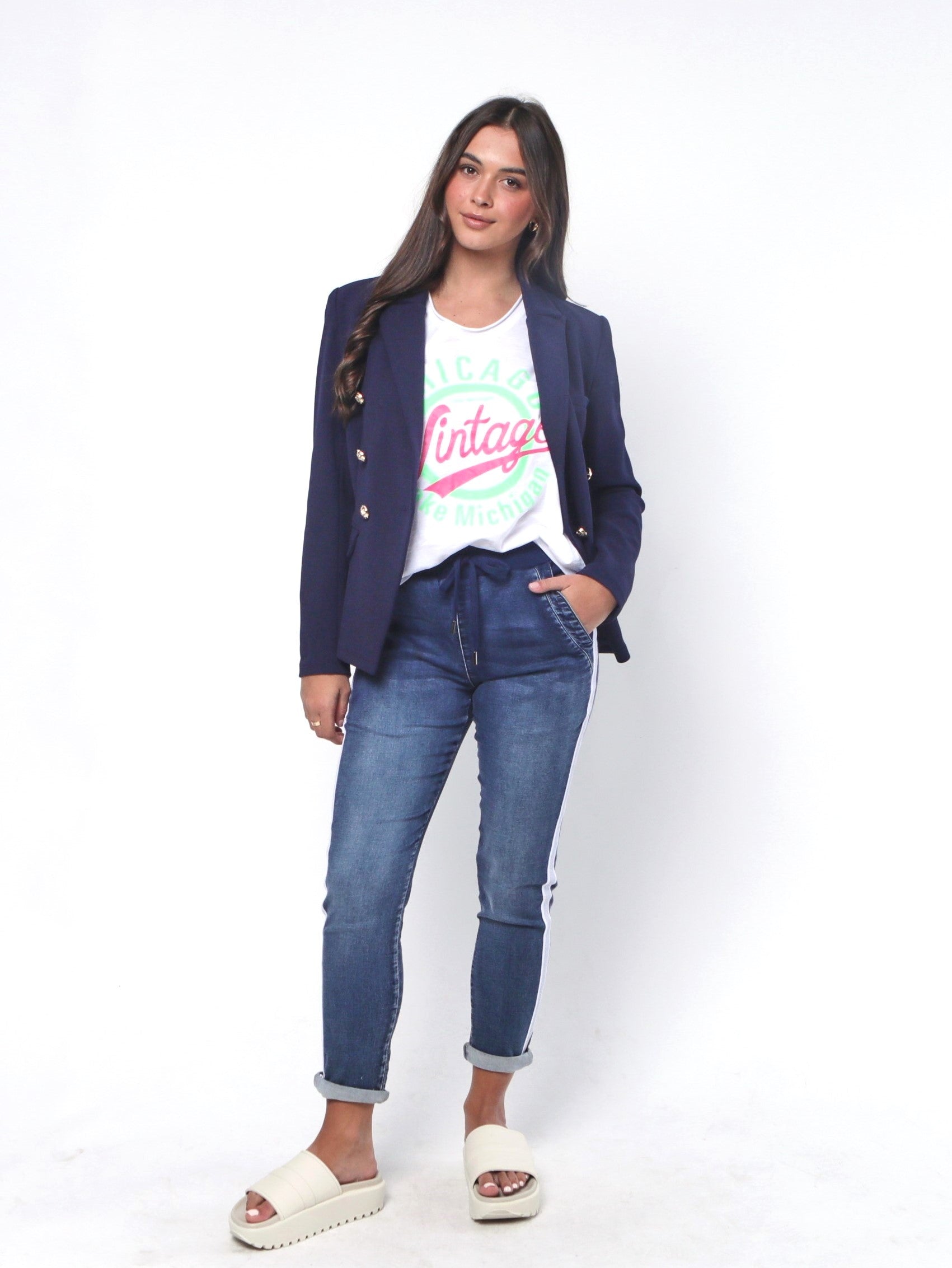 - Boxy cut