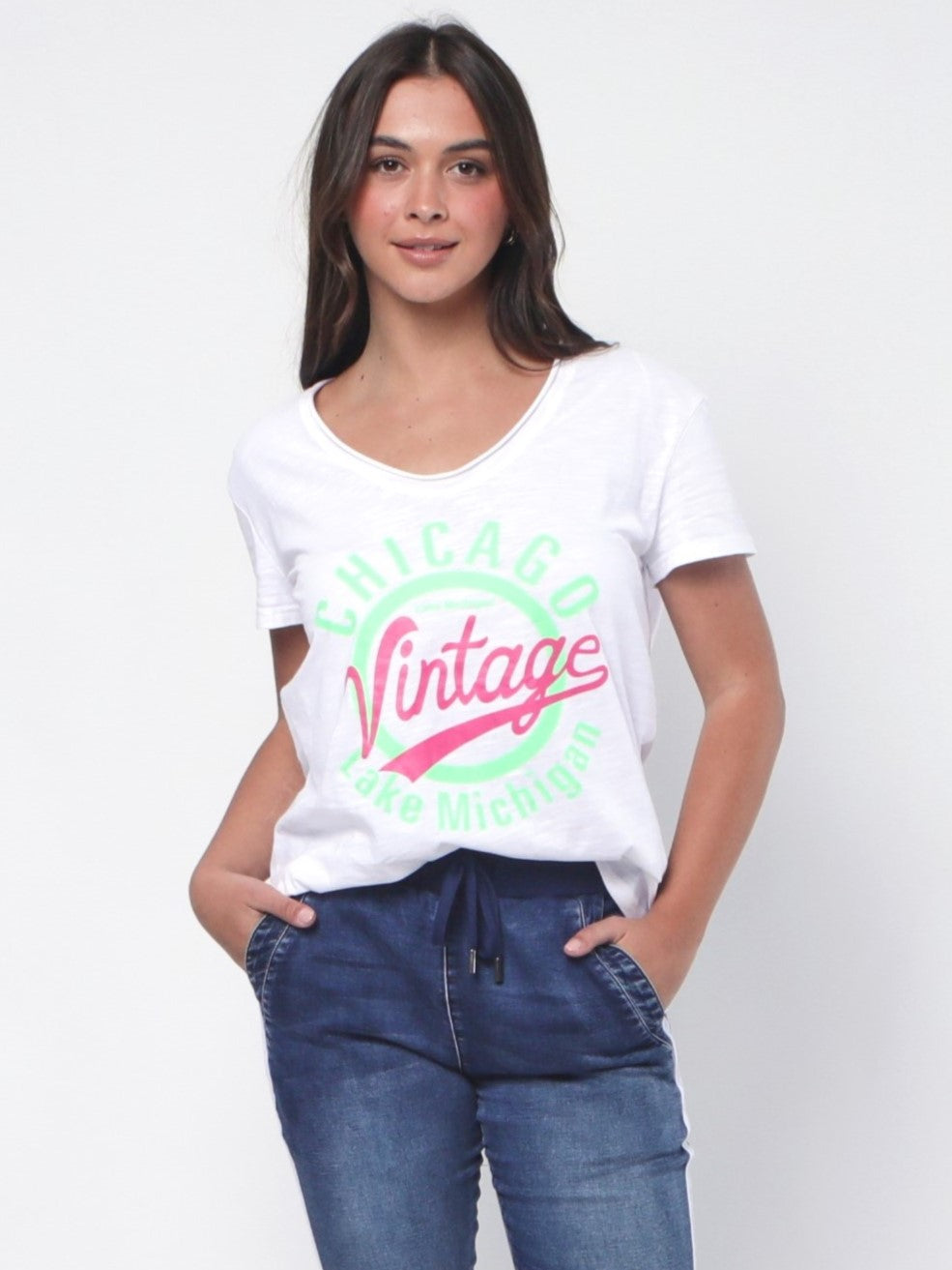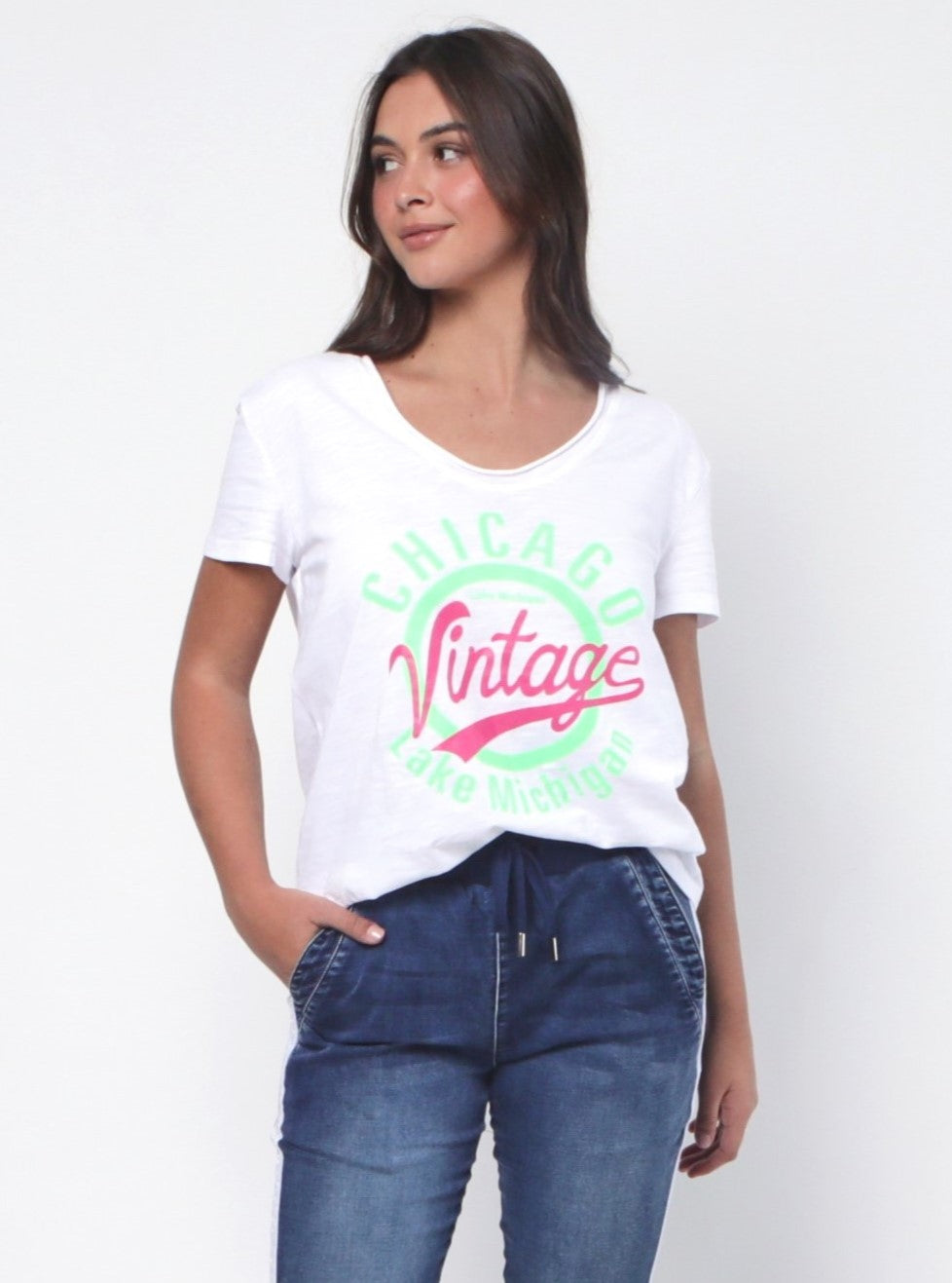 - Vintage print at front