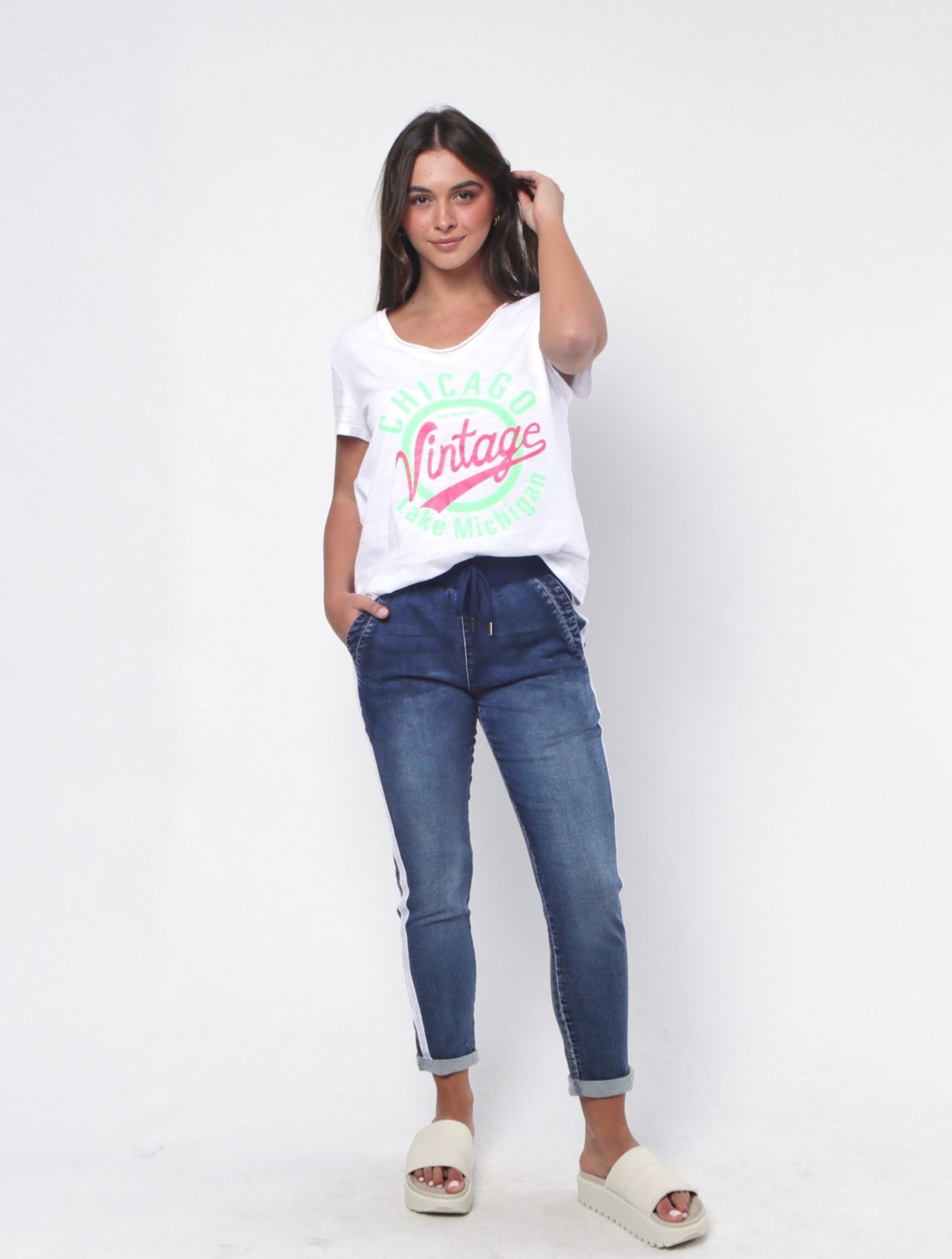 An everyday classic with a touch of difference, this relaxed T-shirt is crafted from a luxurious blend of organic cotton. This is silky soft and comfortable t-shirt with eye catching signature design by Leoni Australia.